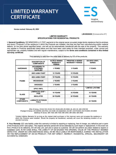 Ask about us the ES Windows Elite series of windows and doors for single family homes.